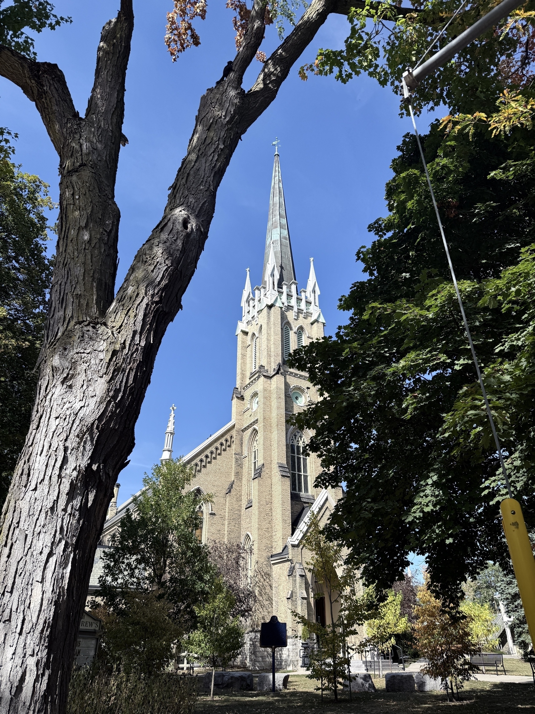 A stately old church in the heart of downtown London. Built in 1869, an architectural example of Gothic Revival, with a prominent tower and steeple, pointed arches and lots of stained glass. Why does a beautiful church setting more easily inspire reverence for me?